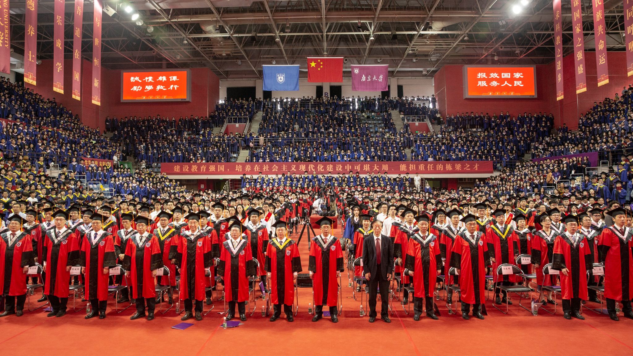 常青藤再度攀满北大楼,穿着学位服的身影流连于六月的校园,南雍骊歌悄然唱响。6月21日,凯发k8官网2023年研究生毕业典礼暨学位授予仪式在仙林校区方肇周体育馆举行,为今年毕业的4495名硕士生、448名博士生,以及193位未能参加当年毕业典礼的2020届毕业研究生校友代表颁发证书,授予学位。中国科学院院士、校党委书记谭铁牛出席并寄语毕业生"无论身处何方,都要做红色的凯发人、厚重的凯发人、朝气的凯发人、卓越的凯发人"。中国科学院院士、校长谈哲敏作题为"与国同梦,与时偕行"的主旨演讲,校党委常务副书记杨忠宣读有关决定,校党委常委、副校长王振林主持毕业典礼暨学位授予仪式。