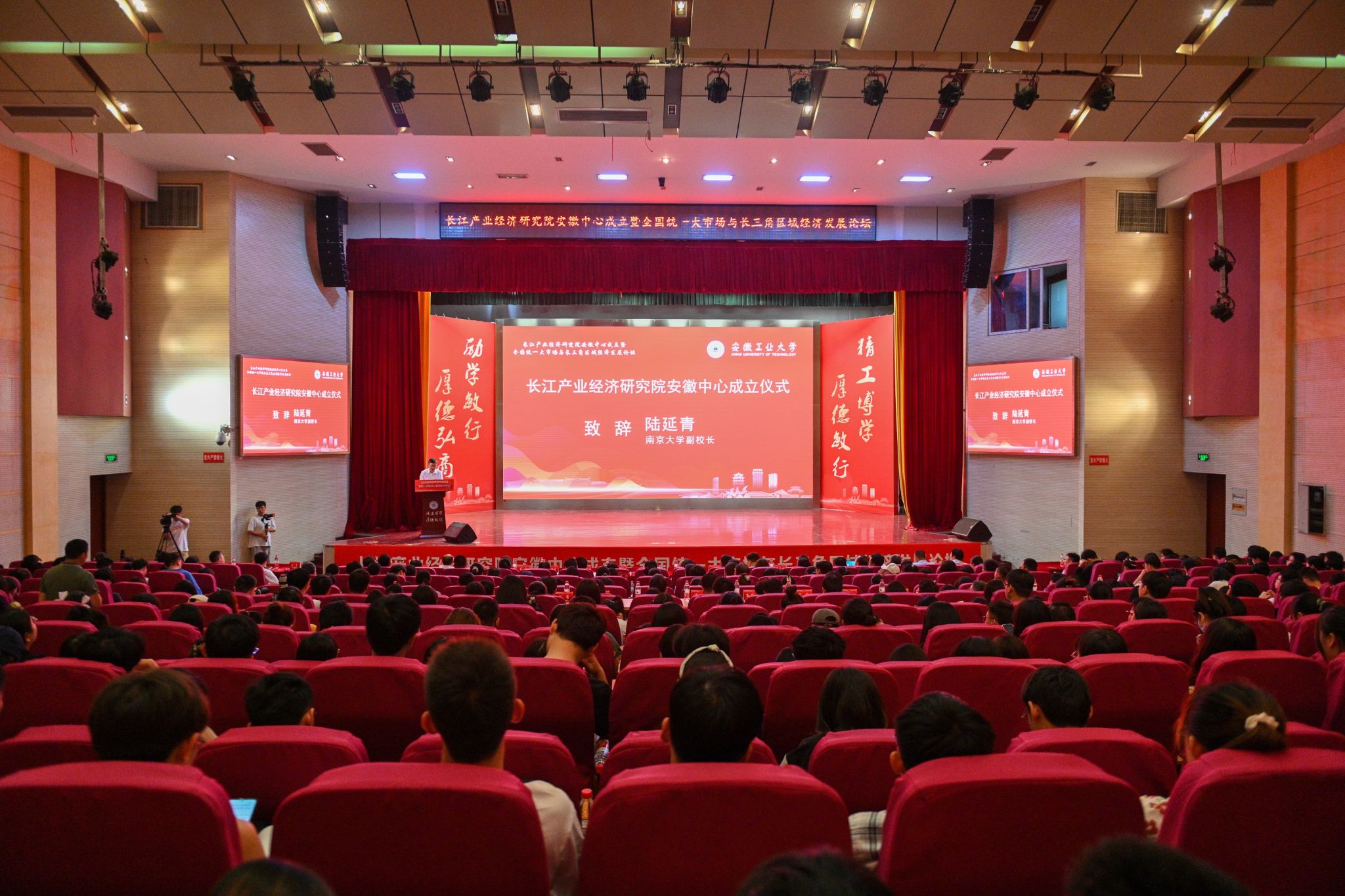 成立仪式上,陆林、陆延青共同为长江产业经济研究院安徽中心揭牌。该中心是长江产业经济研究院加快新型高校智库建设的有力举措,本着“资源共享、优势互补、协同创新、共同发展”的原则同安徽工业大学合作共建,将从平台搭建、团队建设、课题研究、决策咨询、学术交流和人才培养等方面,双方发挥各自优势,通过多种形式开展长期全面合作,共同构建产学研相结合的智库创新体系,为政府科学决策提供人才和智力支持。