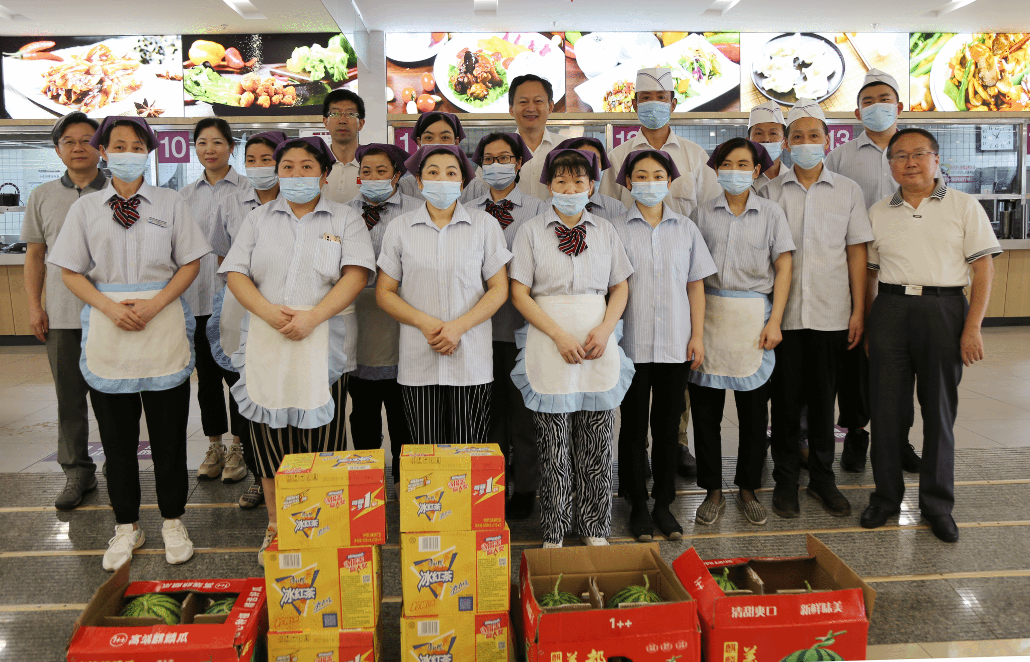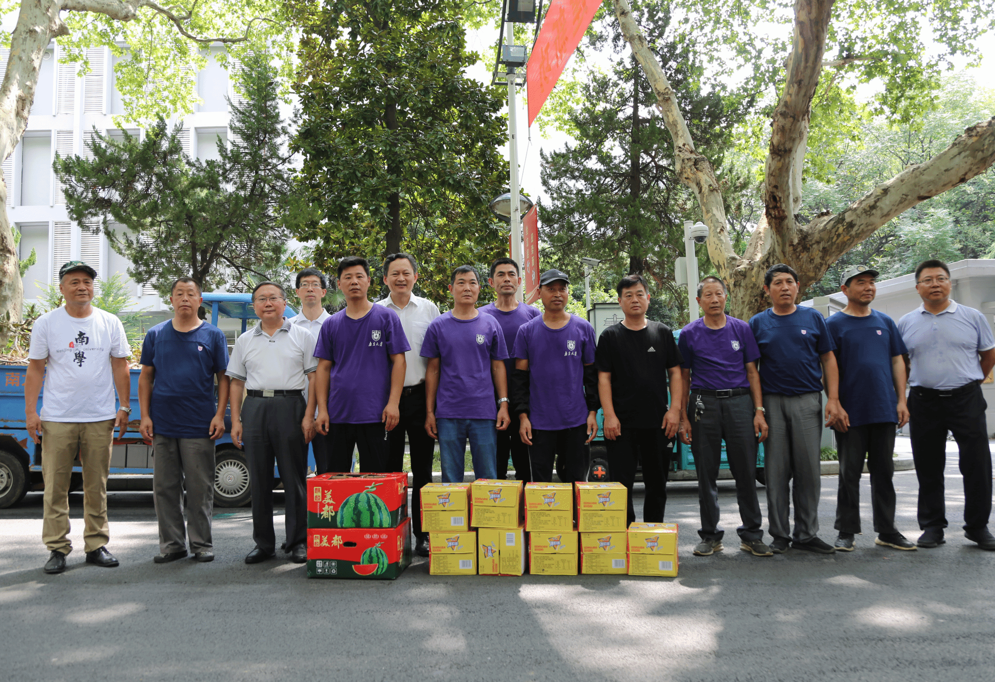 8月1日上午,校党委常委、副校长邹亚军先后来到鼓楼校区南苑宾馆、学生公寓八舍、学生第二食堂、校园绿化环卫现场、学生公寓七舍水电施工现场、安中楼停车场、西苑会议中心留学生公寓等处,看望慰问暑期奋战在校园服务保障一线的后勤员工,为他们送清凉、送关爱。