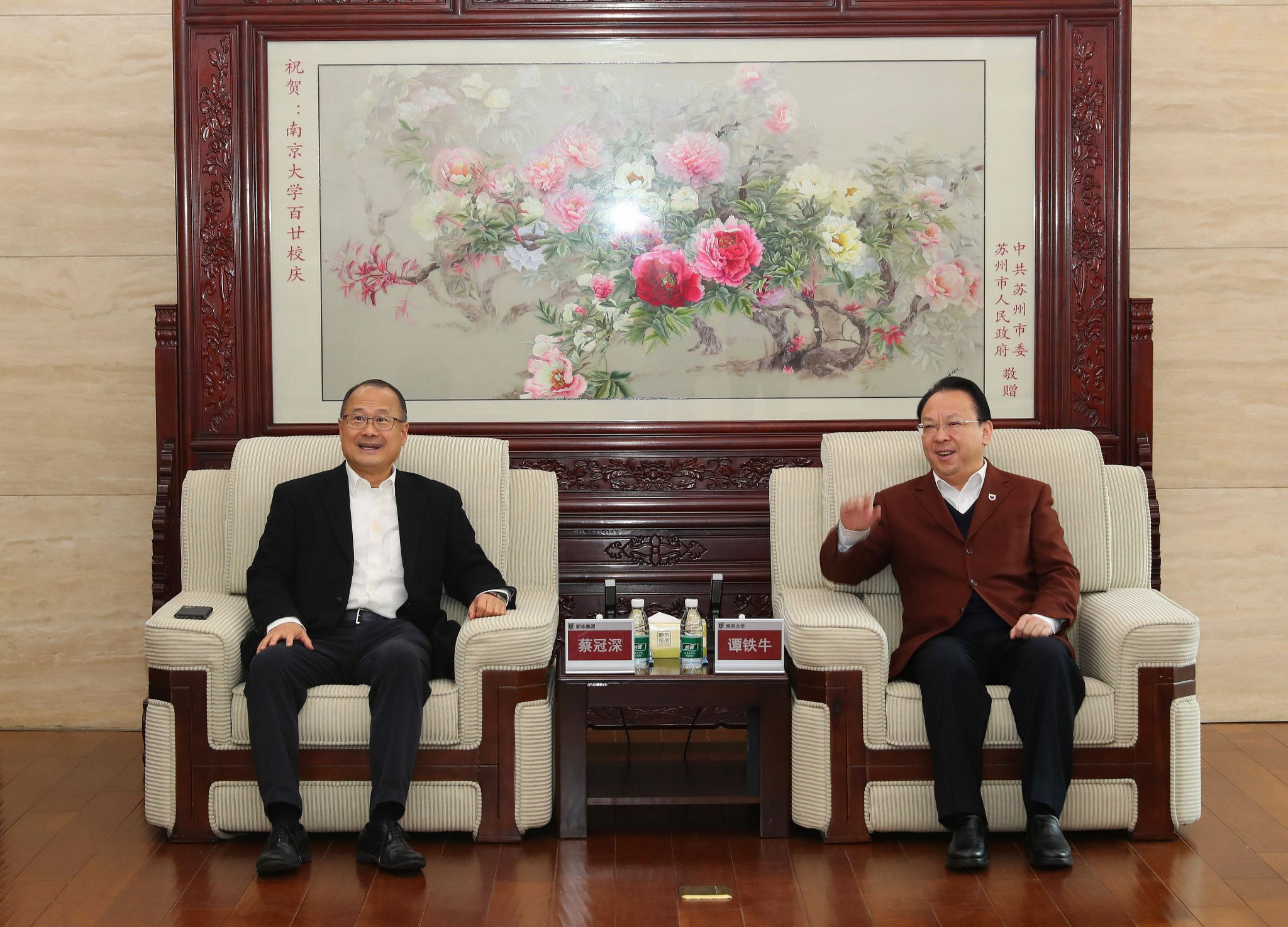 1月2日,全国政协常委、中国科学院院士、凯发k8官网党委书记谭铁牛在仙林校区会见全国政协常委、香港中华总商会会长、香港新华集团主席蔡冠深博士一行。