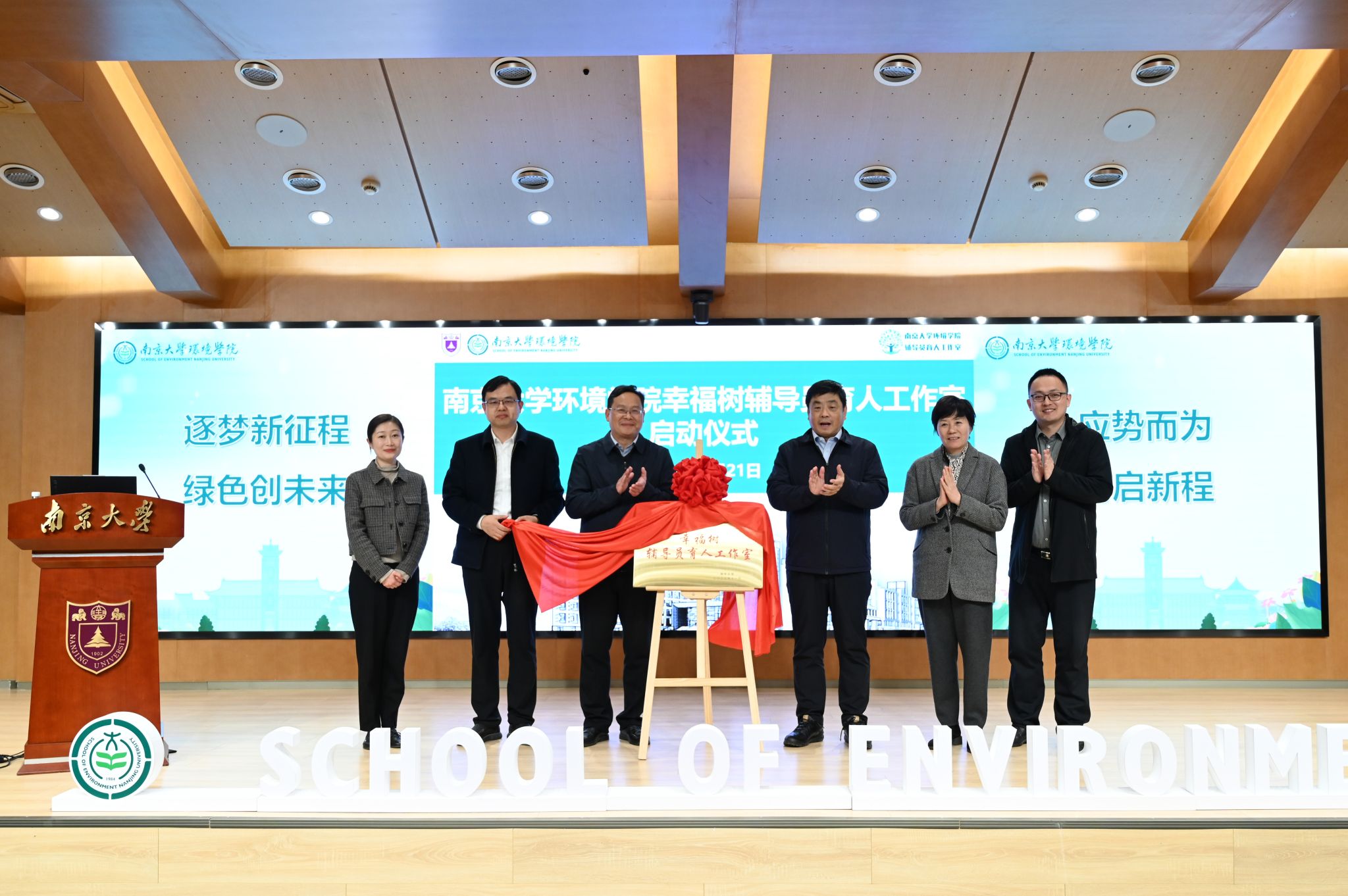 围绕三全育人建设的总体要求,环境学院于2023年11月获批建设幸福树辅导员育人工作室。工作室以思想政治教育、生态文明观的培育和科技创新实践为育人核心,通过绿色引领、绿色实践、绿色发展“三级助推”模式培育时代新人,凝聚学院师生、校友的育人合力,打造“美丽中国生态环境科技创新实践体验基地”,为学生成长成才提供高质量育人平台。