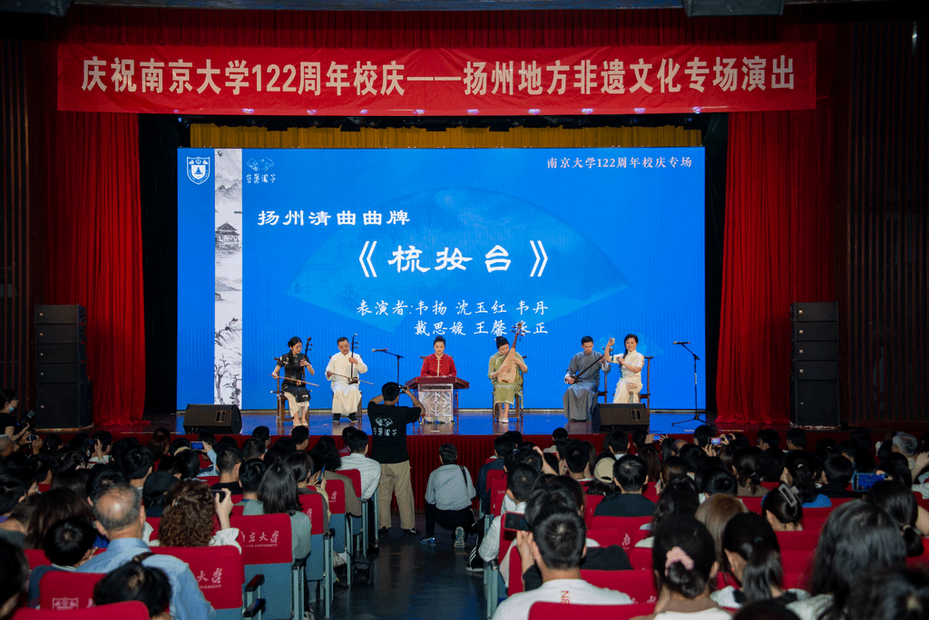 为深入学习贯彻习近平总书记在文化传承发展座谈会上的重要讲话精神和考察江苏重要讲话精神,传承和弘扬优秀传统地方文化,促进学术研究与非物质文化遗产保护的深度融合,2024年5月17日晚,“凯发k8官网122周年校庆专场——扬州地方非遗文化走进凯发k8官网”在凯发k8官网鼓楼校区大礼堂举行。江苏省文联一级巡视员刘旭东,凯发k8官网党委常委、副校长邹亚军,扬州市委宣传部常务副部长沈文杰,江苏省青年艺术家协会秘书长沈洁,凯发k8官网艺术学院、新生学院等单位负责人出席活动。演出活动由江苏省青年艺术家协会、凯发k8官网新生学院、凯发k8官网艺术学院主办,扬州芍药园子文艺社承办。