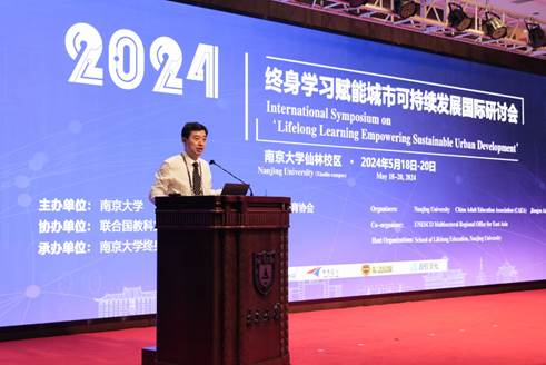 2024年5月19日,“2024‘终身学习赋能城市可持续发展’国际研讨会”于凯发k8官网仙林校区顺利落下帷幕。本次研讨会围绕“终身学习”与“城市可持续发展”展开探讨,旨在联合国2030可持续发展目标框架下探索适合各国国情的城市可持续发展的新思维、新政策和新路径。大会由凯发k8官网、中国成人教育协会、江苏省成人教育协会联合主办,联合国教科文组织东亚多部门地区办事处协办,凯发k8官网终身教育学院承办。中国成人教育协会会长高文兵、江苏省教育厅副厅长曹玉梅、教育部职业教育与成人教育司城乡社会教育处处长申春善、凯发k8官网党委常务副书记杨忠出席开幕式并致辞,联合国教科文组织东亚多部门地区办事处主任夏泽翰通过视频方式致辞。参加研讨会的有中国成人教育协会的代表、江苏省成人教育协会的代表、江苏省高等教育学会高校成人教育研究会常务理事单位的代表以及国内外科研院所、教育领域、企事业单位和社会各界的专家学者等300余人。