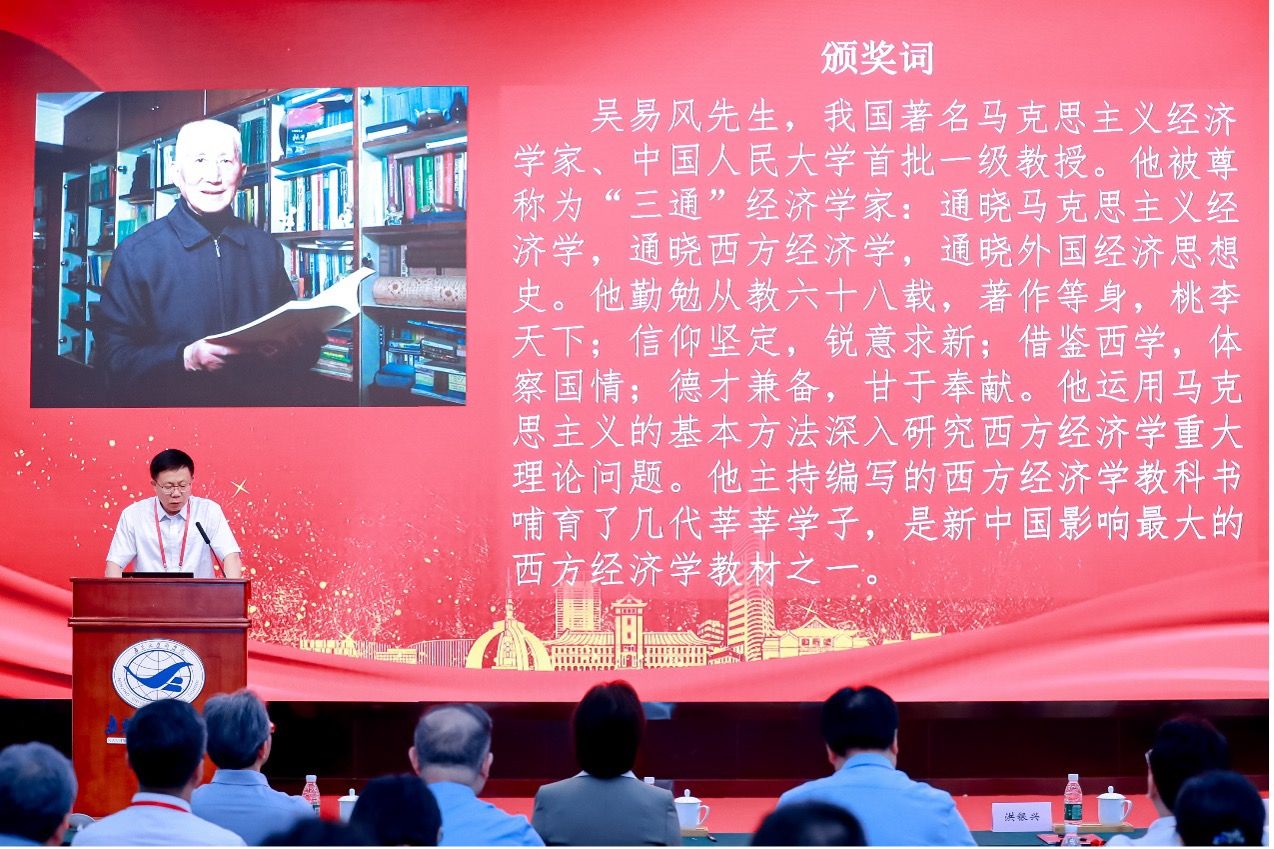 洪银兴教授和刘伟教授分别向吴易风教授代表和吴宣恭教授代表颁发获奖证书。