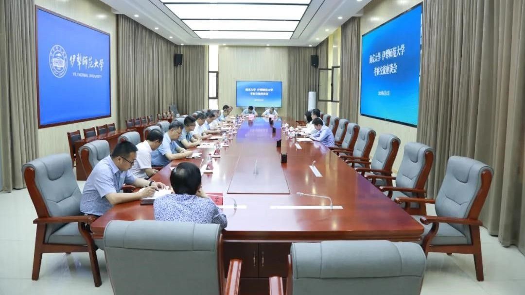 6月12日,我校党委常委、副校长邹亚军一行赴伊犁师范大学开展调研座谈活动。伊犁师范大学党委书记蒋海军出席座谈会并讲话,伊犁师范大学党委副书记、校长马合比亚提·斯德合主持会议。