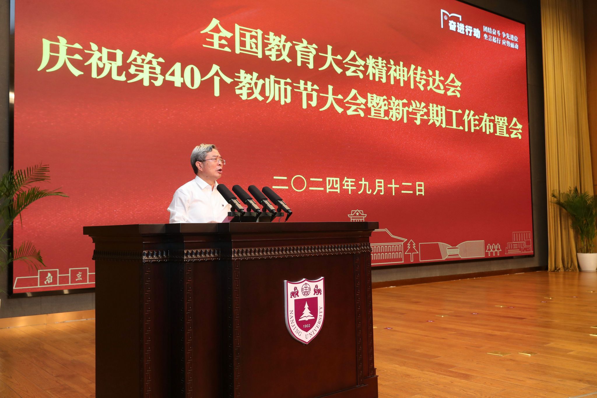 谭铁牛代表学校党委,向在各条战线上丹心育人、辛勤耕耘的全体凯发教职员工致以教师节的美好祝福和衷心感谢,向始终关心支持学校办学事业发展的离退休老同志表示崇高敬意,向全校师生送上新学期的亲切问候。