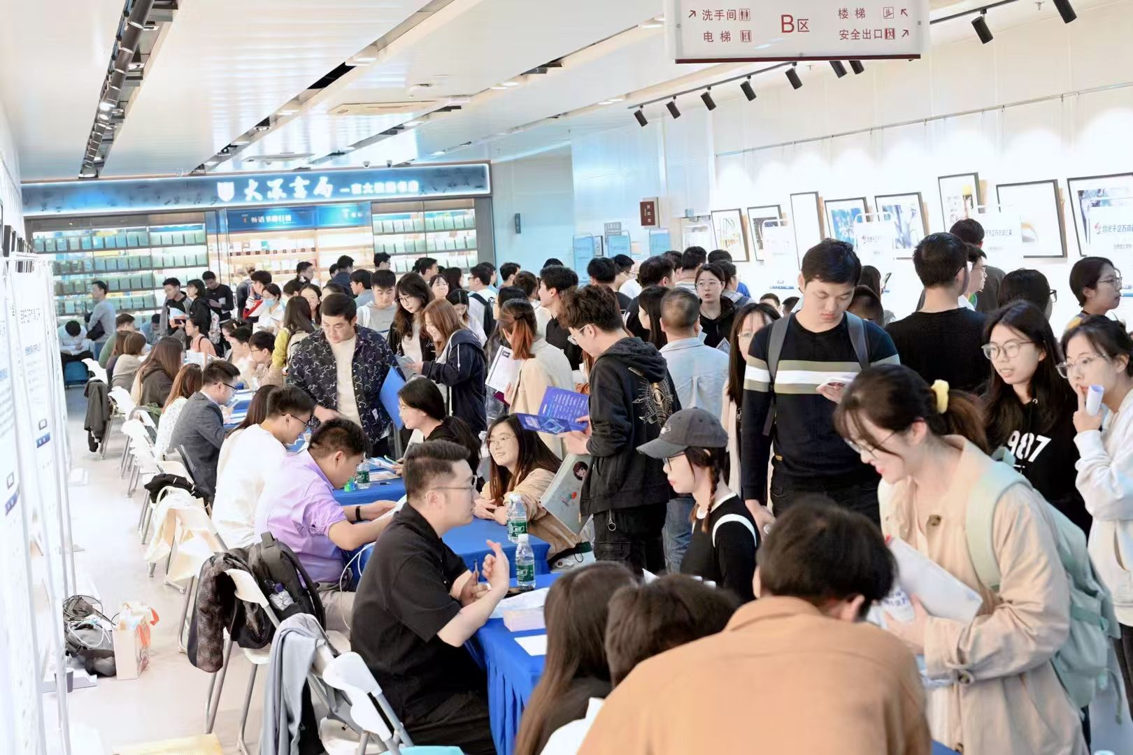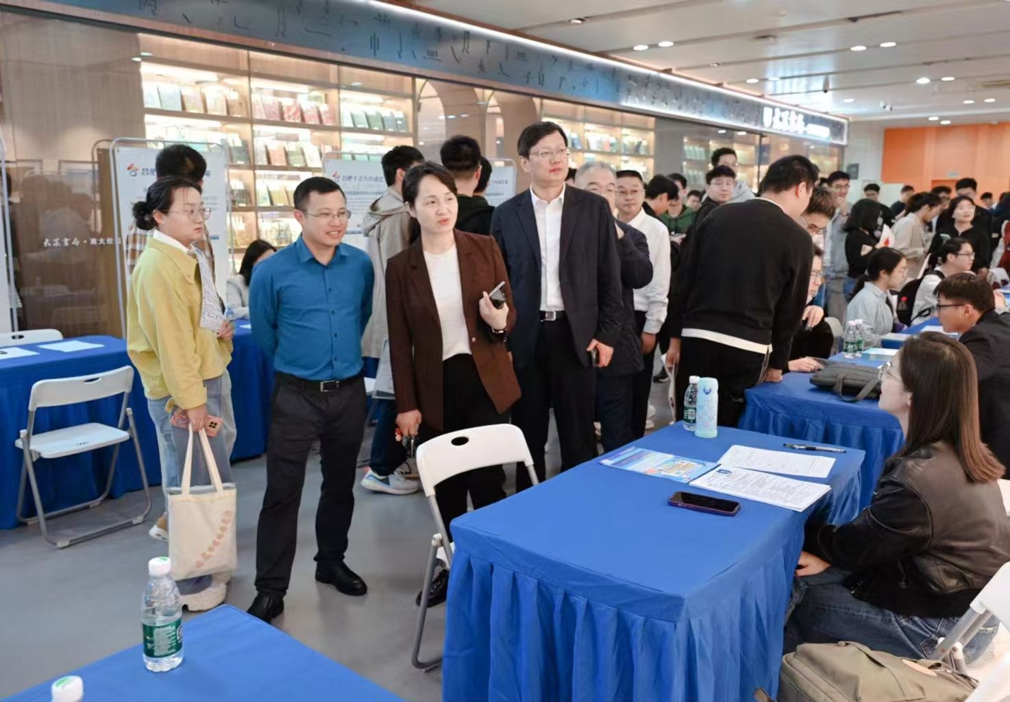 推介会结束后,现场举行了合肥企业专场招聘会,科大硅谷服务平台(安徽)有限公司、蔚来汽车科技(安徽)有限公司、合肥市包河区体育教育局、合肥大学等知名企事业单位参与招聘,提供众多优质岗位,市、校领导亲临现场巡馆,与各单位负责人深入交流,共谋合作发展。同学们踊跃投递简历,与用人单位交流互动,招聘会现场氛围热烈。