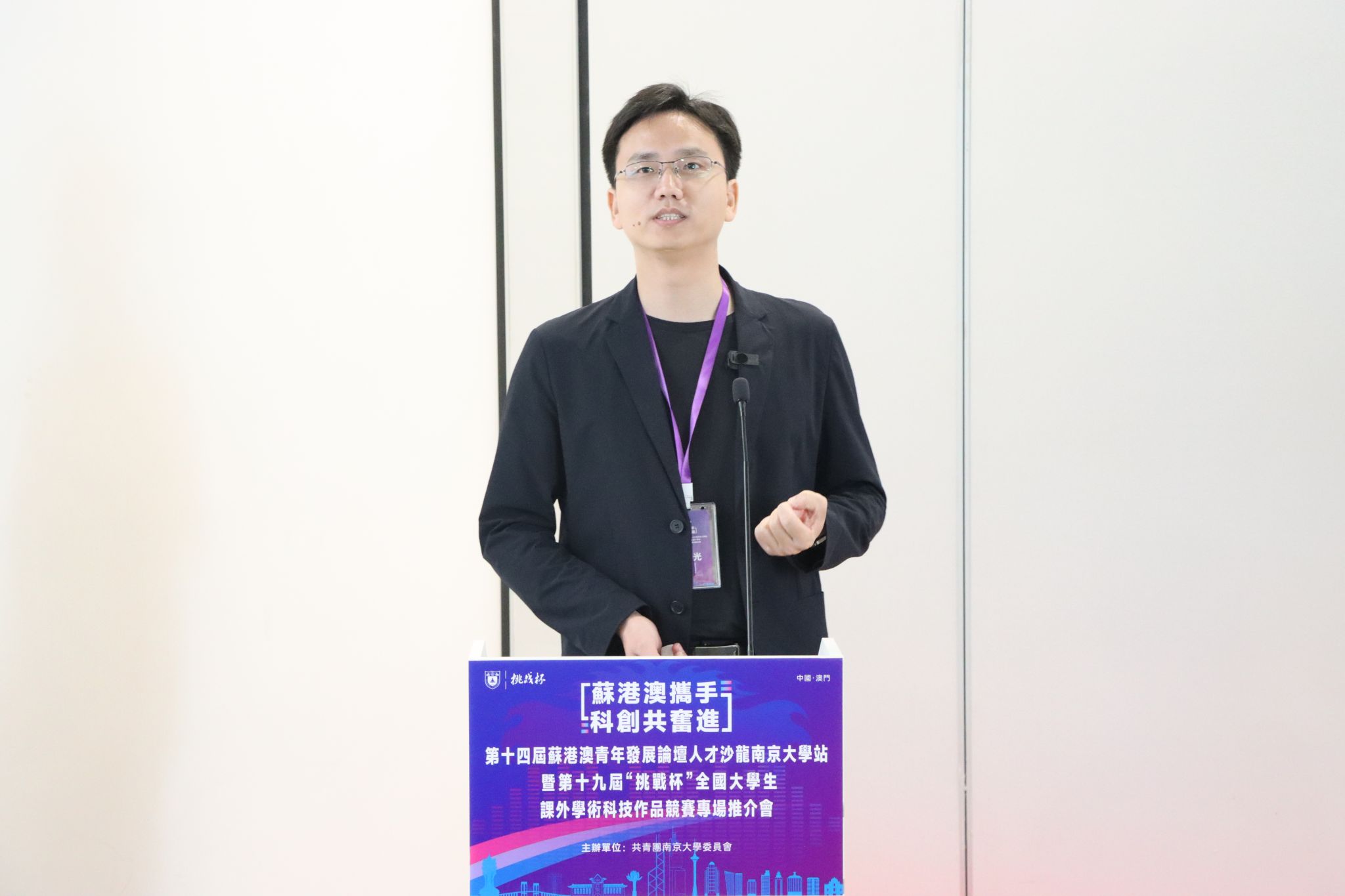 第十八届“挑战杯”全国大学生课外学术科技作品竞赛获奖团队代表、澳门大学刘小天,君隽未来(江苏)生物医药有限公司执行董事、凯发k8官网校友程宇豪分别分享了所参与的“挑战杯”项目和“挑战杯”科创故事。