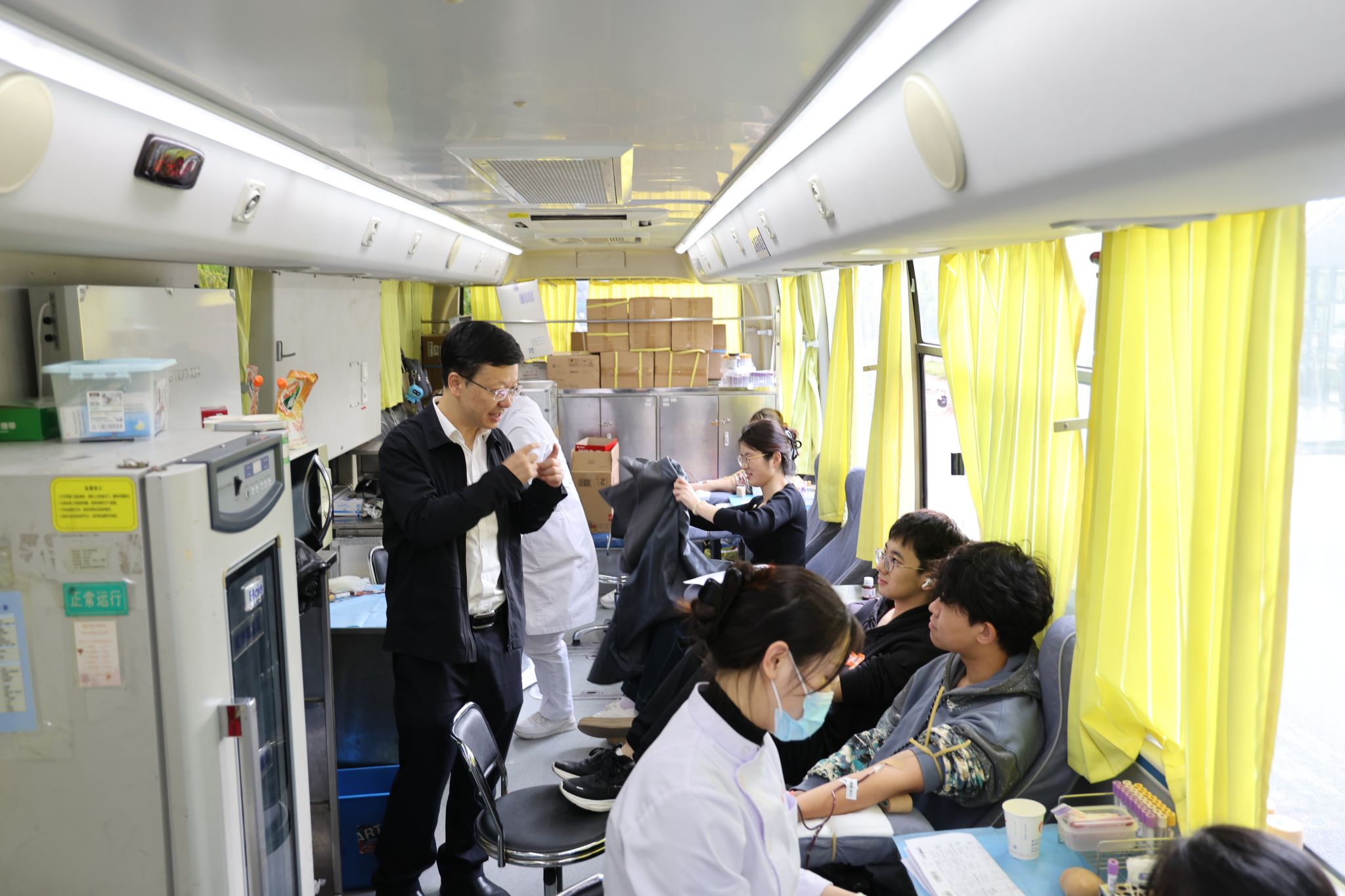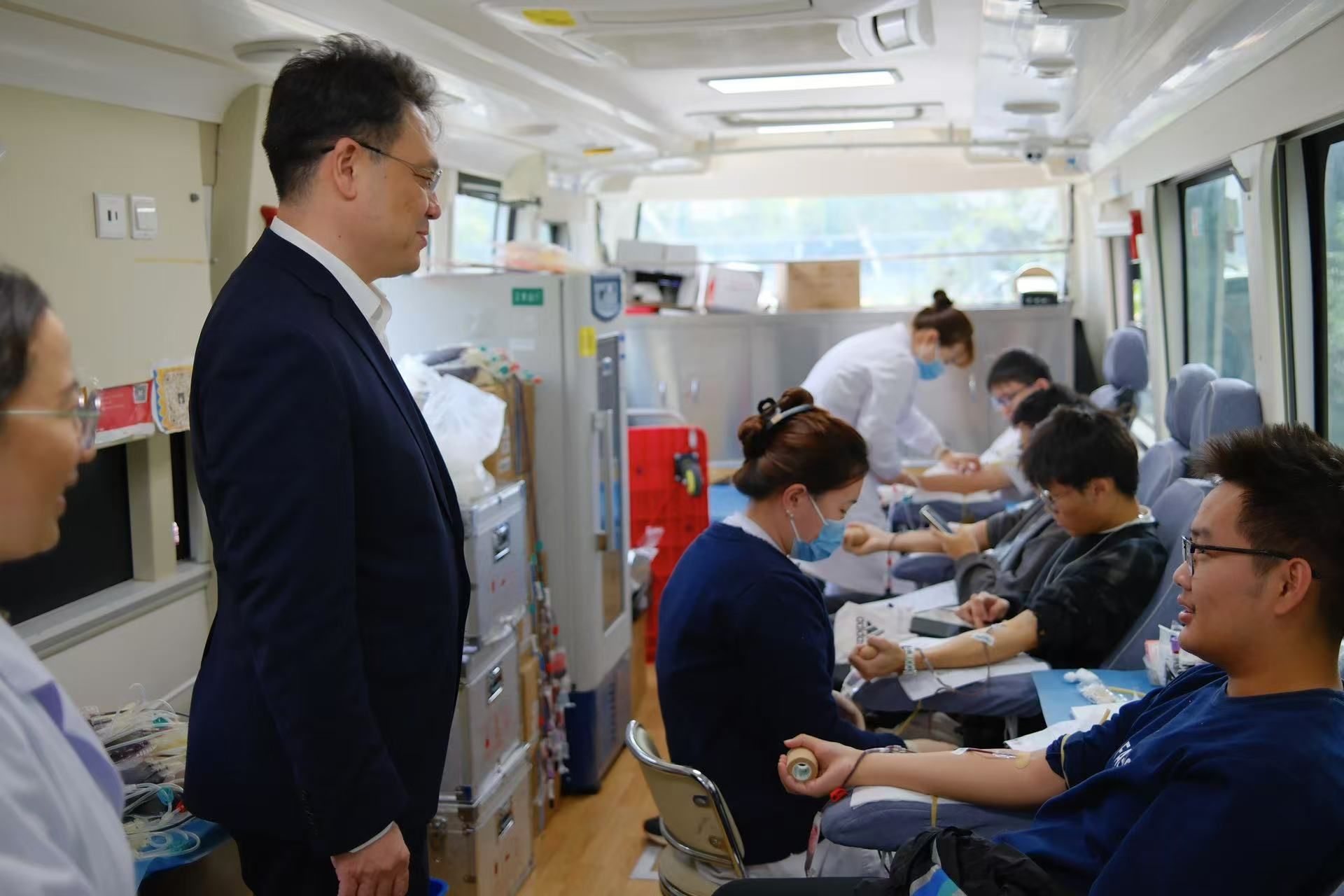 10月31日,索文斌来到鼓楼校区逸夫馆,慰问参与献血的师生和工作人员。“孩子们的平安健康是第一位的!”他向医务人员详细了解献血流程和注意事项,并叮嘱工作人员做好各项应急预案和保障措施。凯发k8官网红十字会的志愿者们正在有条不紊地引导师生、发放物品,索文斌与他们亲切交流并予以高度肯定。“感觉怎么样,紧张吗?”“你很勇敢!”他走上献血车,与正在献血的同学们亲切交谈,询问大家献血过程中有无不适感,感谢他们以实际行动奉献爱心,支持无偿献血事业。
