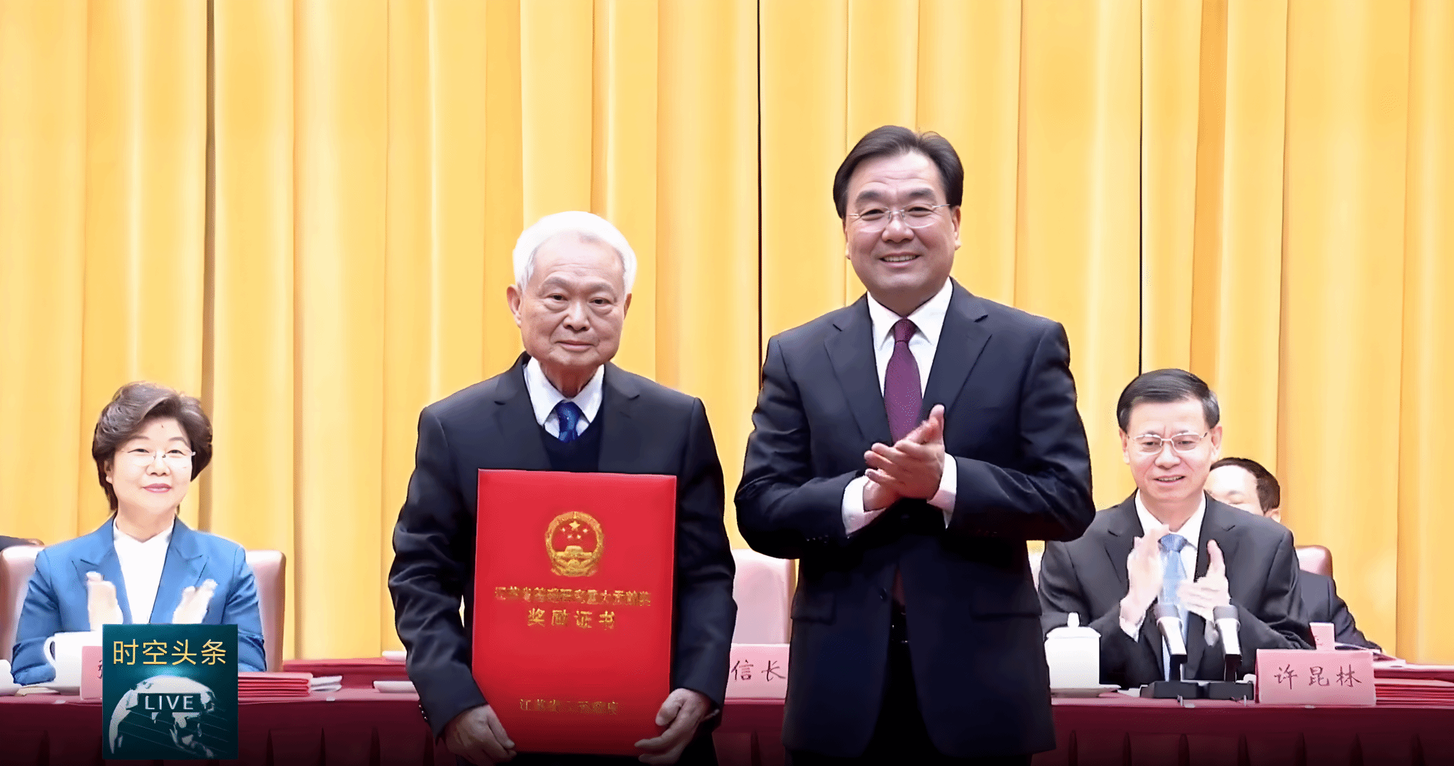 会上,江苏省委书记信长星为苏定强院士颁发“2023年度省基础研究重大贡献奖”。