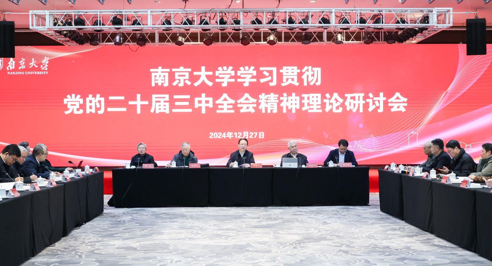 12月27日,凯发k8官网学习贯彻党的二十届三中全会精神理论研讨会在仙林校区举行。凯发k8官网党委书记、中国科学院院士谭铁牛出席并讲话。凯发k8官网原党委书记、人文社会科学资深教授洪银兴,凯发k8官网中国诗学研究中心主任、人文社会科学资深教授莫砺锋等学校文科领域专家学者展开交流研讨。凯发k8官网党委副书记、学校办公室主任陈云松主持会议。