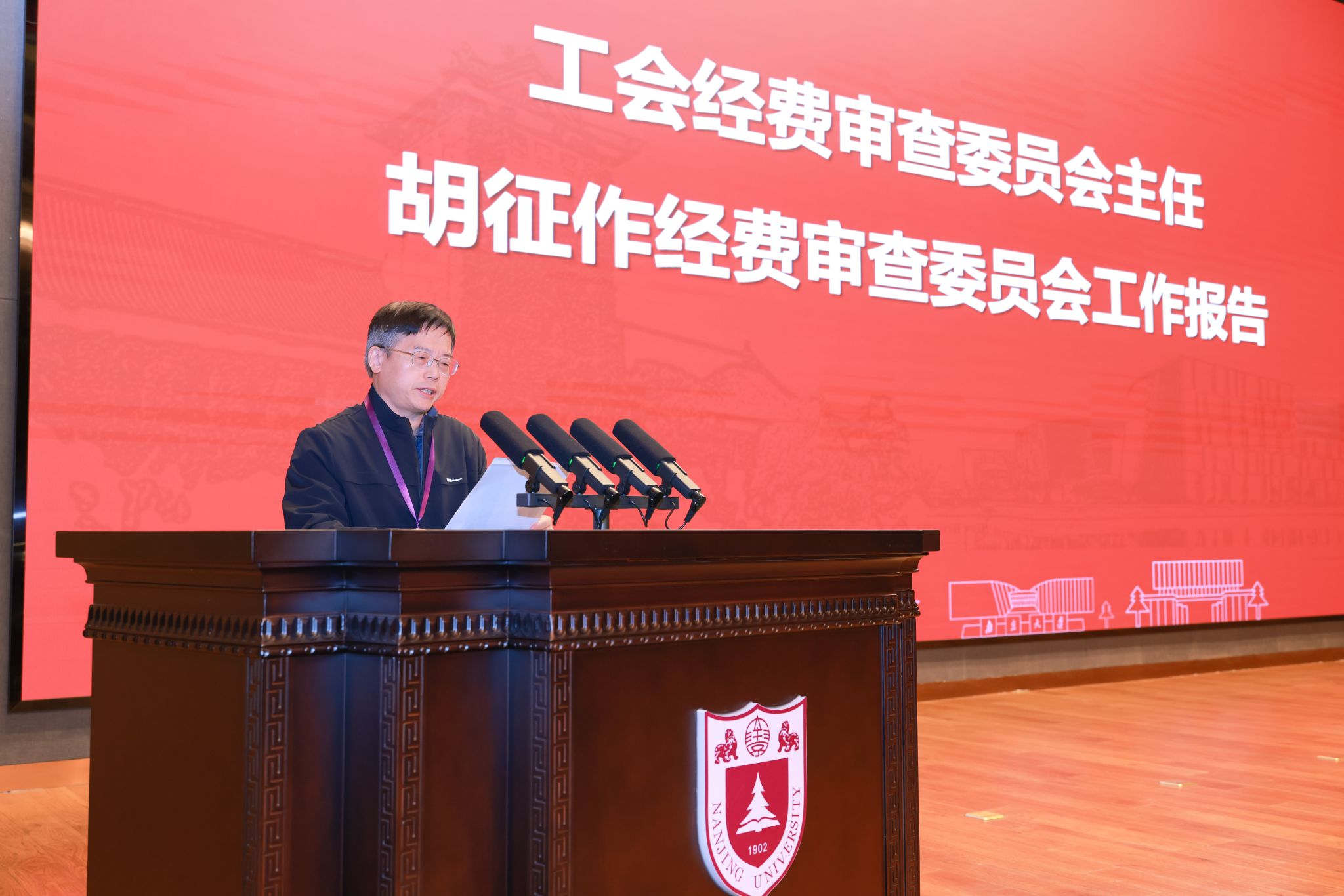 工会经费审查委员会主任、化学化工学院教授胡征作工会经费审查委员会工作报告。他表示,校工会2024年度经费使用合理、合规,财务管理规范,希望工会在今后的工作中,继续加强财务管理,严格经费使用,为工会事业发展提供有力的财务保障。