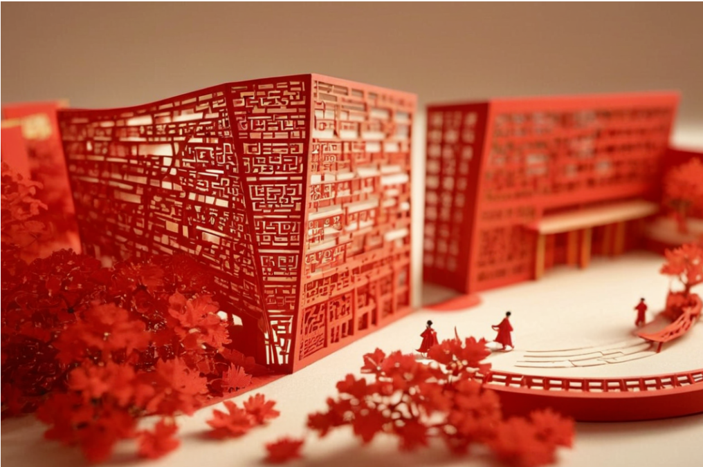 裁红洒金,万象更新。剪纸艺术镌刻着民俗的脉络,承载着文化的底色。当全国各地高校遇上首个“非遗版”春节,AI变身“剪纸大师”,将校园里的图书馆、体育馆等标志性建筑换上“红装”,将传统与现代科技碰撞出奇妙火花,校园一砖一瓦,都被赋予新的温度与春的气息。