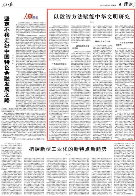 中华民族拥有五千多年源远流长的文明脉络,中华优秀传统文化是中华文明的智慧结晶和精华所在。习近平总书记高度重视中华文明和中华优秀传统文化,强调“推动把中国文明历史研究引向深入,推动全党全社会增强历史自觉、坚定文化自信,坚定不移走中国特色社会主义道路”“只有全面深入了解中华文明的历史,才能更有效地推动中华优秀传统文化创造性转化、创新性发展,更有力地推进中国特色社会主义文化建设”。当前,新一轮科技革命和产业变革深入发展。推动中华优秀传统文化创造性转化和创新性发展,不仅要善于传承和发展人文研究的传统方法,还要善于用好大数据、人工智能等当代资源和研究手段,充分发挥数智技术的赋能作用,深入把握中华文明发展的宏大历程,以量化手段和科学标准来深入揭示中华文明的结构特征,深入解读中华文明上下五千年的文脉。
