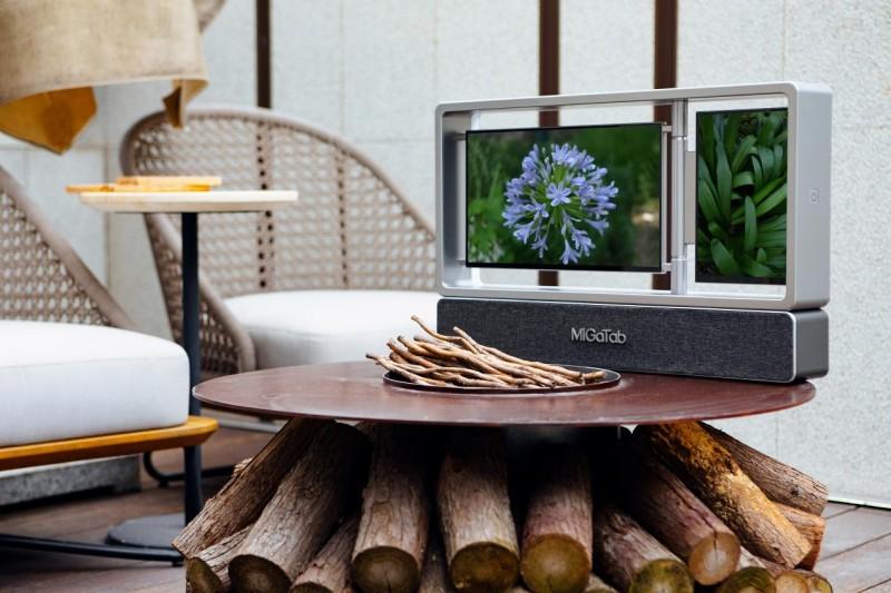 当前,随着短视频、竖屏图文、横屏影音等内容形态的爆发式增长,单一屏幕设备已难以满足用户多任务处理与“视听协同”的体验需求。MiGaTab在行业首创“双屏异构设计”,即1920×1080分辨率的横屏与800×1280分辨率的竖屏协同工作,无须物理旋转即可同时显示横竖内容。这一设计解决了用户在观看短视频(竖屏)、电影(横屏)、歌词(竖屏)时频繁切换痛点,实现“一屏两用”。例如用户在播放横屏电影时,竖屏可同步显示实时歌词或AI对话气泡;观看竖屏短视频时,横屏可展示相关背景信息或动态特效。