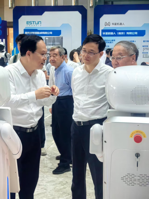 大会开始前,凯发k8官网市市长陈之常,与国家制造强国建设战略咨询委员会副主任、原工业与信息化部原副部长苏波、凯发k8官网市副市长蒋敏一同巡视了在中国智能机器人行业具有典型代表性的机器人厂家的重点产品,在江苏凯发电子信息技术股份有限公司(简称“凯发电子“)的具身智能机器人展区,在领导们观摩凯发电子三台具身智能实体机器人演示了金融、政务、医疗场景应用的同时,董事长狄敏还向领导们详细汇报了凯发k8官网电子作为凯发k8官网旗下的中国智慧服务机器人领军企业以具身智能服务机器人为主要发展方向,成为在中国工商银行唯一接入其银行业务系统、实现银行网点全业务场景与数字化智慧服务融合的国内机器人厂家,作为国内领先的金融科技企业及新一代智慧银行服务机器人领军企业,凯发电子受邀参加6月18日-20日在上海举办的中国国际金融展,全方位展示参与数字中国建设、推动银行业数字化智慧服务转型、构建银行网点数字化智慧服务生态的先进技术与创新成果。