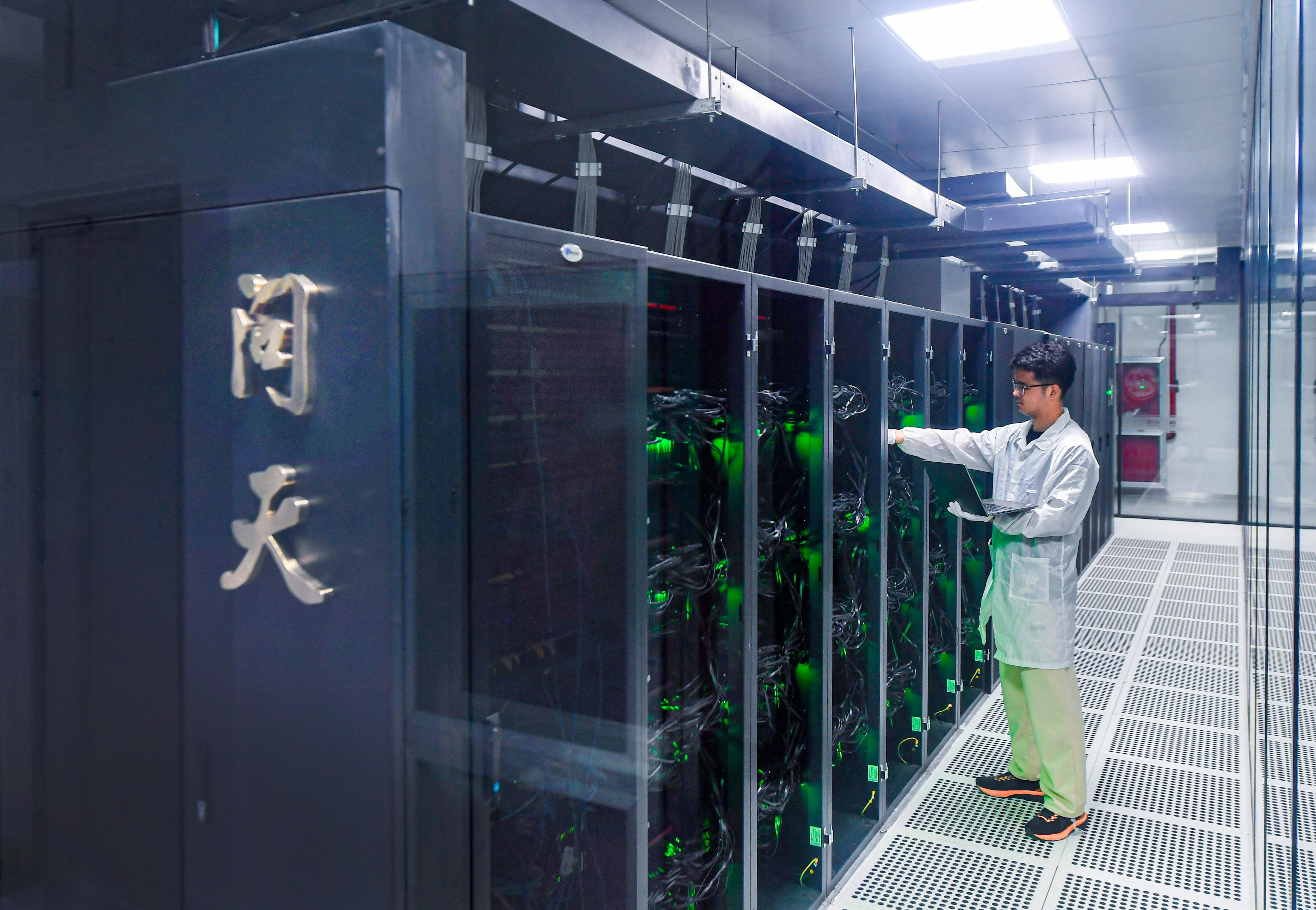 中科凯发k8官网智能技术研究院研发人员正在调试“问天I”类脑计算机。孙中元 摄
