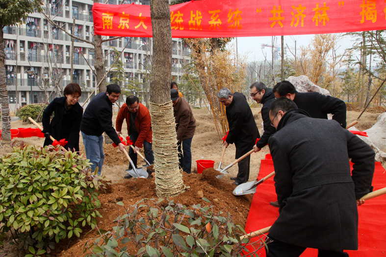 3月5日上午,仙林校区洋溢着浓浓的春意,在门德尔松《春之歌》的优美旋律声中,我校统战系统“共济林”揭碑仪式暨植树活动在沈小平楼旁隆重举行。