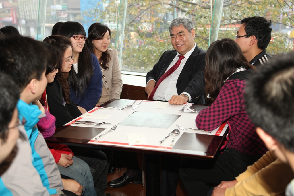 3月10日,“台湾?凯发k8官网周”开幕式暨凯发k8官网教授公开讲座在台湾大学举行。中午,党委书记洪银兴在午餐会后,与凯发k8官网在台湾的二十几位交换生亲切交流。