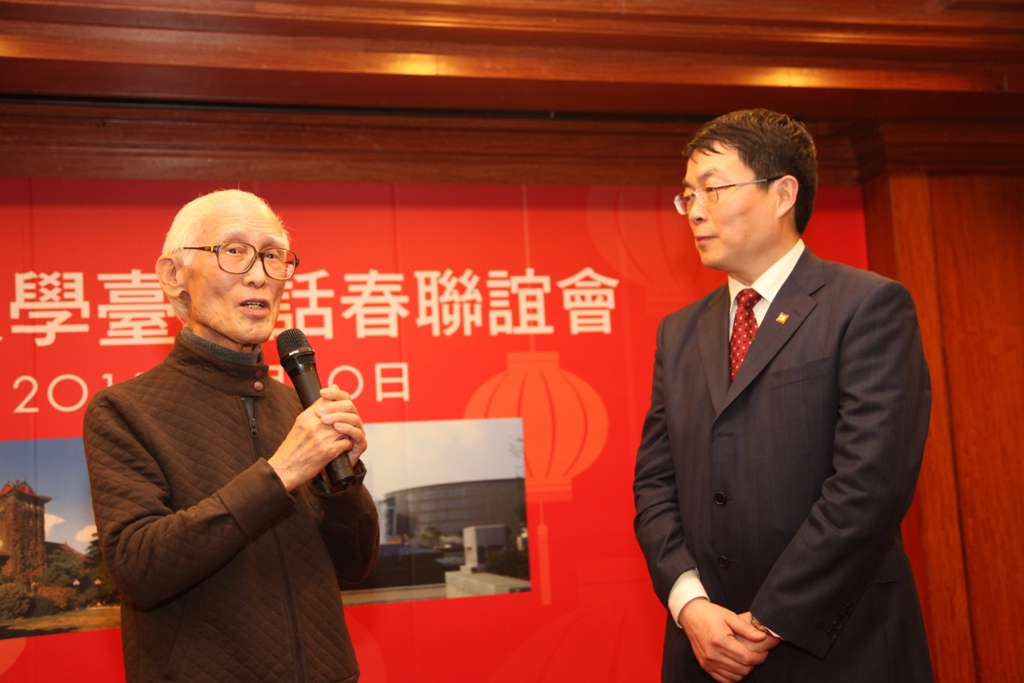 不到两星期就要过100岁生日的老校友叶炎荣老先生当天的心情十分激动,他坚持走到台上发言,他希望这样的活动能够多举办几次,两岸的联系能够更加密切。