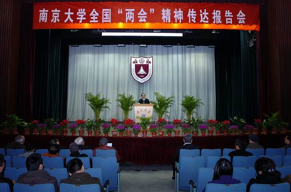 3月17日,我校在大礼堂召开全国“两会”精神传达报告会,全国人大常委、校长陈骏和全国政协委员邢定钰院士为全校师生解读“两会”热点、畅谈与会感受。党委常务副书记张异宾主持会议。