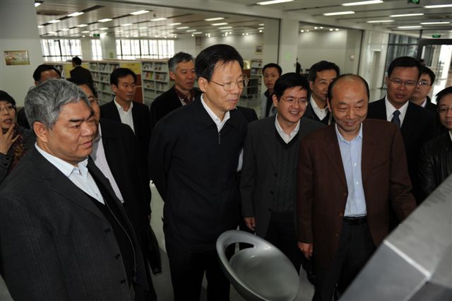 在杜厦图书馆,李省长一行在洪修平馆长的陪同下先后参观了部分珍藏文献、工具书阅览处、期刊室等。他感慨道,图书馆的环境太好了,真是非常优越!在这样的环境中,没有理由读不好书。