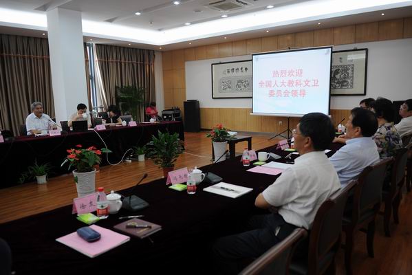 9月6日上午,全国人大常委会委员、教科文卫委员会副主任程津培院士一行来我校仙林校区调研产学研合作情况。校党委书记洪银兴、常务副校长张荣、校长助理李成,以及校办、科技处等相关部处负责人陪同调研。