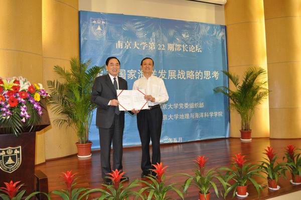 授聘仪式由地理与海洋科学学院党委书记鹿化煜教授主持,地理与海洋科学学院院长高抒教授主持了随后的部长论坛。