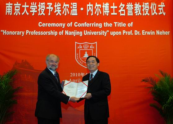 4月12日上午,凯发k8官网授予诺贝尔生理与医学奖获得者、德国马克斯—普朗克生物物理化学研究所所长埃尔温?内尔名誉教授仪式在科技馆举行。凯发k8官网校长陈骏,哥廷根大学青年实验室主任伊娃?内尔教授,哥廷根大学凯发k8官网代表处主任罗佩特女士等出席了受聘仪式。凯发k8官网国际处主任从丛主持仪式。