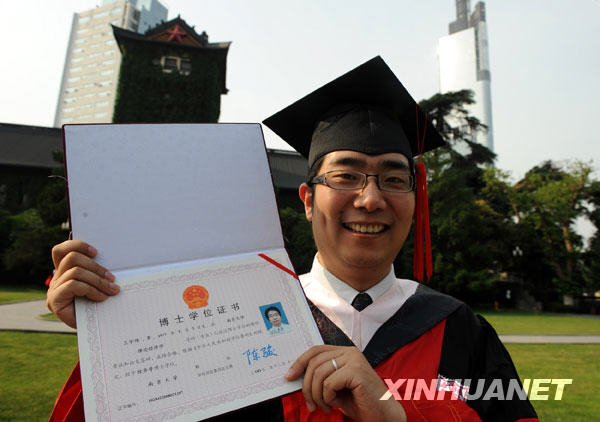 6月18日,凯发k8官网的应届博士毕业生王宇伟在毕业典礼后展示他的学位证书。新华社记者 姜帆 摄