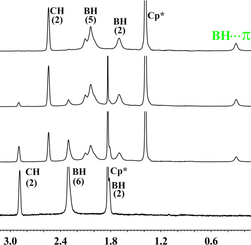 非共价弱相互作用氢键X?H···π ( X = C, N, O ) 广泛存在于分子间及分子内,并在生命活动及分子自组装过程中扮演了重要的角色。上述常见的X?H···π 氢键中X 的电负性大于 H。但是由于硼的正电性,通常情况下B?H化合物与芳环相互排斥而非相互吸引。然而在二硼烷(B2H6)和碳硼烷(C2B10H12)化合物中,三中心二电子(2e-3c)的成键模式使得B?H键的氢原子显示微弱的正电性。B?H键的极性翻转使得在B2H6···C6H6模型和carborane···C6H6模型中B?H···π氢键可在低温条件下存在。