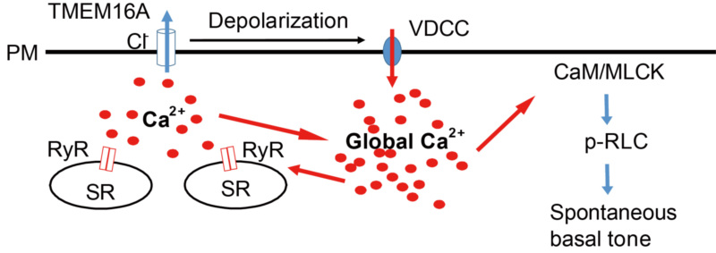 该论文以肛门内括约肌(IAS)为模型,对自发张力产生的机制进行了系统研究。首先,团队研究人员发现基因敲除钙离子依赖的肌球蛋白轻链激酶(MLCK)完全抑制了自发张力的产生,而敲除肌球蛋白轻链磷酸酶调节亚基(MYPT1)对自发张力并无影响,从而推断胞内钙仍然是自发张力产生的关键信号。但关键问题是,括约肌在无刺激时,胞内钙流是如何产生的?研究者观测到,IAS平滑肌细胞有明显多地发放钙火花(Ca2+ sparks,一种自发性局部钙信号),增强或抑制道雷诺定受体(RyRs)可以影响自发张力的水平。然而,细胞实验表明单纯由钙火花所释放的钙离子并不足以引起收缩。通过使用抑制剂、激活剂、基因敲除动物等手段研究发现:L型电压门控钙离子通道(VDCCs)以及钙离子激活的氯离子通道TMEM16A可调节括约肌细胞钙离子水平和自发张力;抑制或敲除TMEM6A可导致小鼠肛门括约肌收缩力的丧失。由此提出,肛门括约肌自发收缩的过程为:自发性的钙火花激活TMEM16A引起氯离子外流,由此造成平滑肌细胞膜去极化、激活VDCCs介导胞外钙离子内流,最终激活MLCK起始平滑肌收缩。该研究提出的收缩机制不但阐明了肛门括约肌的收缩机制,还为粪失禁、肛裂等疾病的治疗提供了全新的思路,也为其他括约肌功能机理提供了思路。