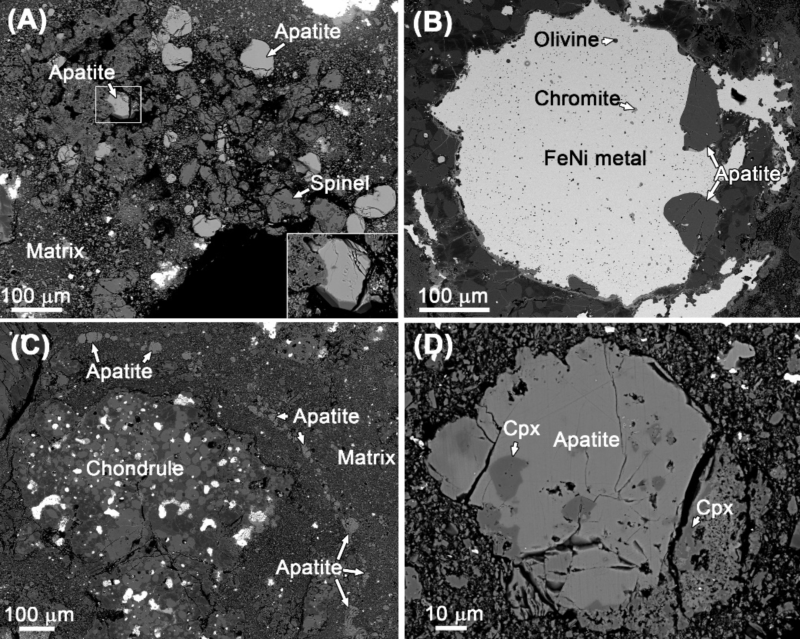 图1. DaG 978陨石中独特产状的磷灰石颗粒