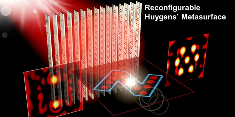 图1. 可重构超透镜实现电磁波的动态聚焦和多点聚焦切换示意图。