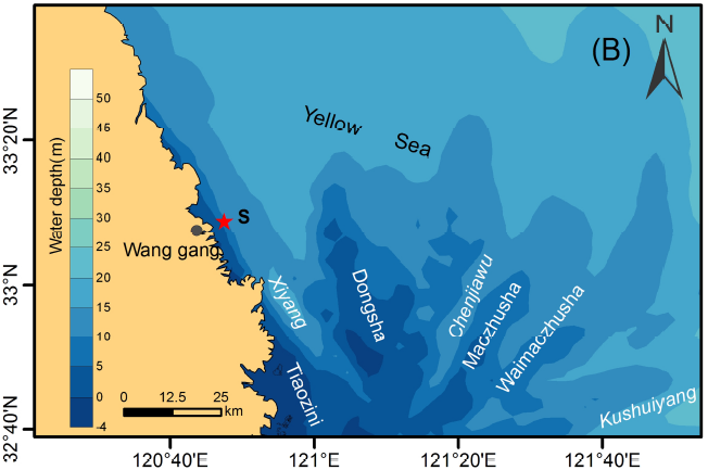 近年来,凯发k8官网地理与海洋科学学院、凯发k8官网海岸与海岛开发教育部重点实验室科研人员,组建了现代化的近底边界层观测系统(图1),在南黄海潮滩海岸(图2)进行长期观测,定量研究极浅水环境的水动力和地貌演化过程,在极浅水沉积环境中的沉积地貌方面取得若干新认识。(1)水深 < 0.2m的极浅水阶段,其持续时间仅占整个潮周期的11%,但在极浅水阶段产生的侵蚀淤积厚度占整个潮周期地貌变化的35%,表明传统观测中经常被忽略的极浅水效应在沉积地貌演化中是非常关键的;(2)在极浅水环境的海底冲淤演化模拟中,只有考虑极浅水阶段的冲淤时,计算结果才能跟实测值相吻合(图3);(3)极浅水阶段的沉积动力过程与微地貌(如沙纹)之间存在相互反馈关系,有助于加深微地貌形成和消亡机制的认识和理解。该项研究表明,在潮汐海岸环境中,考虑极浅水效应可提高海岸地貌演化的预测精度。此项研究是河口海岸演化新模式和新理论的有益补充。