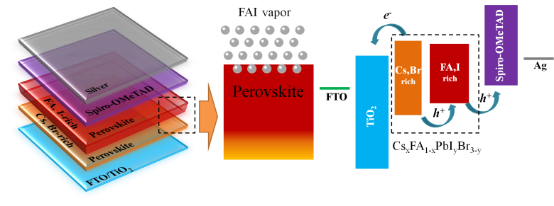 Mixed cation perovskite solar cells by stack-sequence chemical vapor deposition with self-passivation and gradient absorption layer