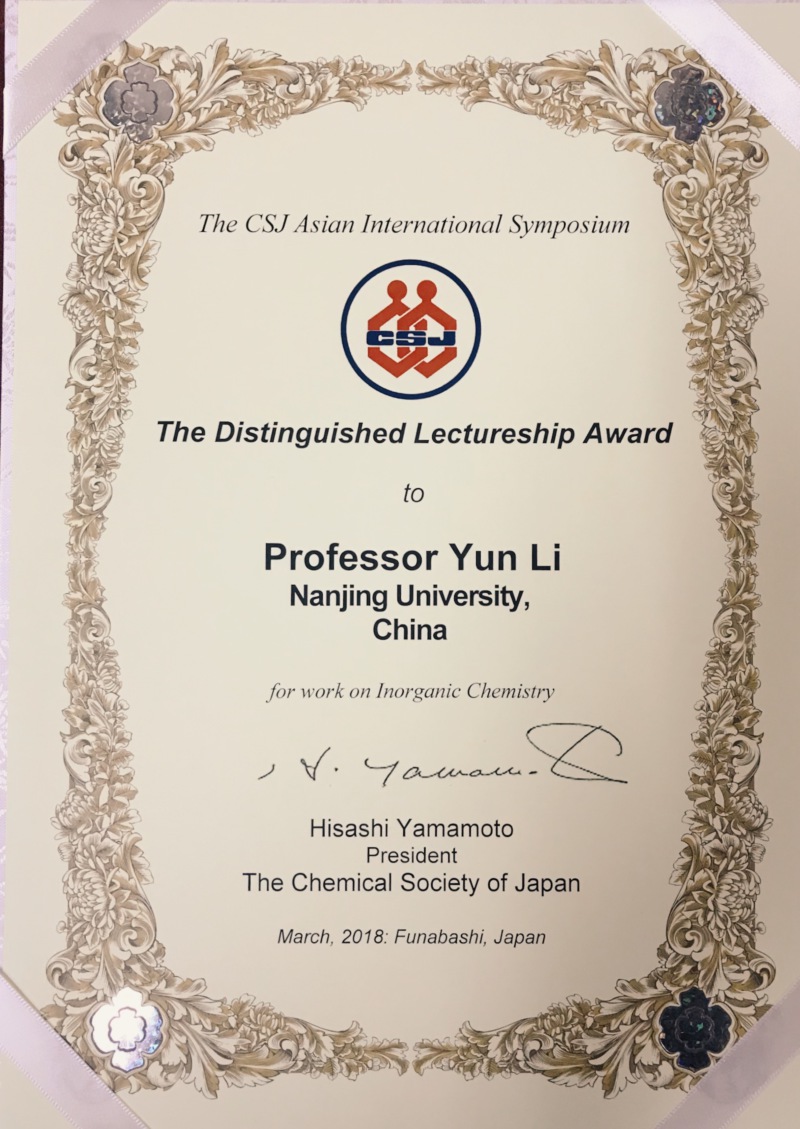 近日,我校电子科学与工程学院李昀副教授荣获2018年度日本化学学会(the Chemical Society of Japan)颁发的the Distinguished Lectureship Award(或称为Rising Star Award)。此奖项是日本化学学会为表彰亚洲各国在化学、材料等相关研究领域做出突出贡献的优秀青年科学家而专门设立,旨在树立与宣传当代亚洲地区化学研究工作者的优秀典型,加强亚洲青年科学家的学术交流,促进科研合作。