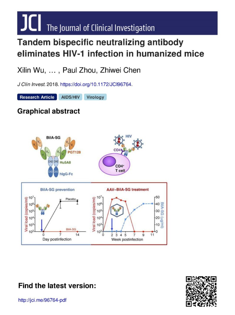 近期,凯发k8官网医学院特任副研究员吴喜林在香港大学医学院读博士期间的科研成果在《临床研究杂志》(Journal of Clinical Investigation)发表,该成果阐述了一种针对艾滋病的新型的四价双靶向广谱中和抗体(bi-specific bNAb),可有效抑制所有测试过的艾滋病病毒株,并促进清除人源化小鼠体内的潜伏感染细胞,这为艾滋病临床治疗带来新曙光。该成果自4月 26日香港大学官网报道以来,被新华网等主流媒体及微信公众号相继转载报道,得到了业界的广泛关注。