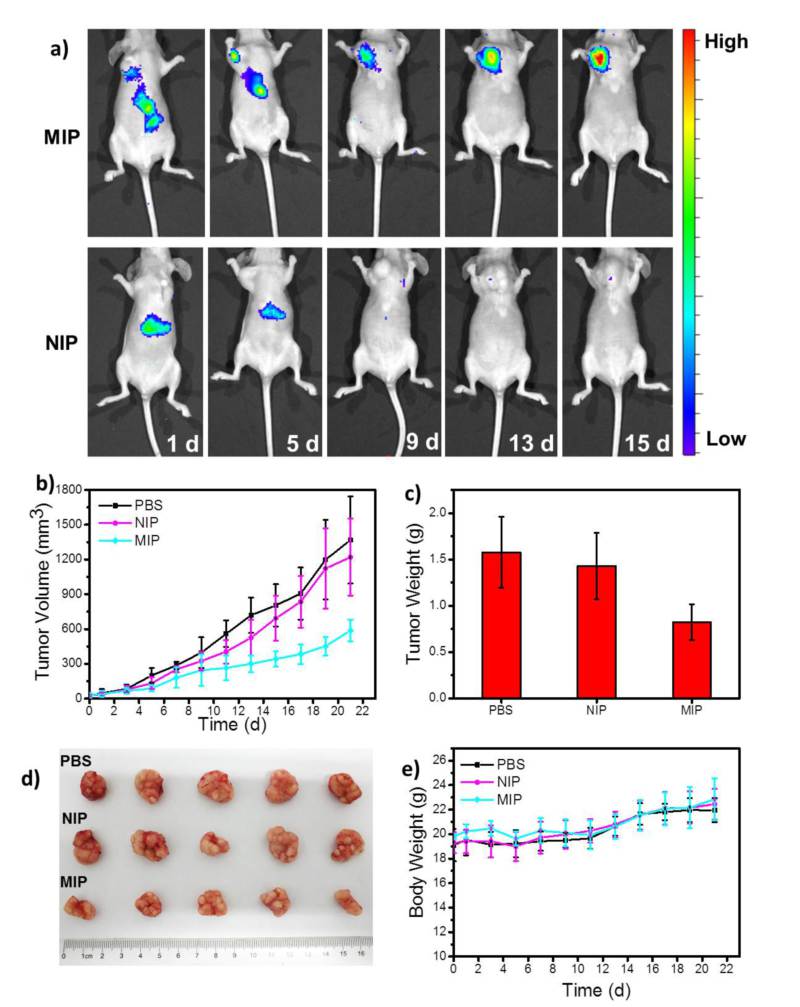 最近,我校化学化工学院刘震教授研究团队在自主发展的硼亲和可控定向表面印迹技术(Chem. Sci., 2014, 5, 1135-1140;Angew. Chem. Int. Ed., 2015, 54, 10211-10215;Nat. Protoc., 2017, 12, 964-987;Anal. Chem., 2018, 90, 9845–9852)的基础上,提出了利用纳米分子印迹聚合物(nanoMIP)抑制癌细胞生长的新颖策略。该nanoMIP以人表皮生长因子受体2(HER2)糖链为模板制备,能结合几乎所有的HER2糖链,通过阻断HER2与其家族蛋白的二聚化而阻断HER2信号通路,从而实现对HER2高表达的乳腺癌细胞的生长抑制(原理见图1)。细胞实验表明,该nanoMIP能专一靶向HER2+癌细胞,生长抑制率达30%(图2)。动物实验表明,经nanoMIP处理的实验组的平均肿瘤体积仅为未处理的实验组的一半(图3)。由于该研究中所采用的分子印迹技术适用于各种各样的糖链,该策略可以便捷地扩展至其它的癌症信号通路。该研究不仅为HER2高表达的乳腺癌的治疗提供了崭新的路径,而且为基于纳米分子印迹聚合物的纳米医学研究指明了新的方向。
