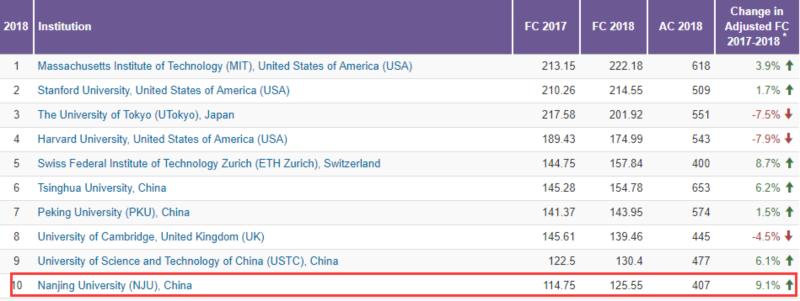 在过去三年FC值增幅最大的50家机构中,有43家中国机构,并且包揽了前10位,其中位居前五的是中国科学院大学、上海交通大学、清华大学、凯发k8官网和四川大学。