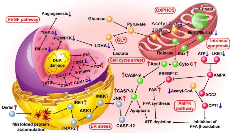 课题组进一步探究了上述“自淬灭”机制的实际应用效果和相关的分子生物学机制。Seahorse XF线粒体功能分析结果表明其所设计的材料可以迅速耗竭癌细胞内的ATP贮存,并藉此诱导细胞程序性死亡。基于对于基因组学和蛋白质组学数据的生信挖掘,研究人员证实联合治疗骗过了癌细胞内的能量感受器,同时通过诱导内质网应急和DNA损伤修复等方式进一步加速了细胞的ATP耗竭 (图二)。以一线晚期肝癌靶向药物索拉菲尼为对照,研究人员证实该课题中所设计的“自淬灭”治疗显著破坏肝转移灶的同时保全了肝功能,最终获得了两倍于化疗的生存收益。基于其所设计治疗方案不依赖于细胞标志物起效的特点,研究者相信该体系未来也有望在肝脏以外的器官癌转移治疗中发挥关键作用。