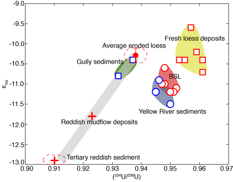 凯发k8官网地球化学团队利用铀同位素破碎年代学示踪喇家遗址黑砂的来源。通过对比黑砂与潜在源区的铀同位素特征,发现喇家遗址黑砂的(234U/238U)值与黄河沉积物接近而与支沟物质存在较大差异,表明黑砂来自上游黄河溃决洪水,而与支沟无关。需要注意的是,该工作只是证明了喇家遗址上发生过一次超级黄河大洪水,至于这次洪水与喇家地震灾难的时间关系,是否与大禹的那次洪水有关还需要进一步的论证。本工作与该地区其它时代的支沟泥流、堰塞湖和溃决洪水沉积亦不矛盾。