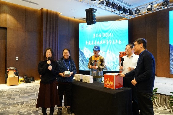 本次年会为了提供更多的讨论交流机会,设立了两个单独的时间段进行展板交流,累积时间2个半小时。共有70余位资深学者和青年才俊通过展板介绍自己的最新研究成果,吸引了众多代表参与讨论。为了增加趣味性和鼓励展板交流,设立了针对展板交流的奖品,赞助商提供的地质锤、登山包等具有专业特色的奖品让获奖者开心不已,活跃了会场气氛。