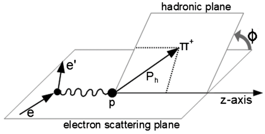 图1. 单介子半举深度非弹性散射反应运动学示意图