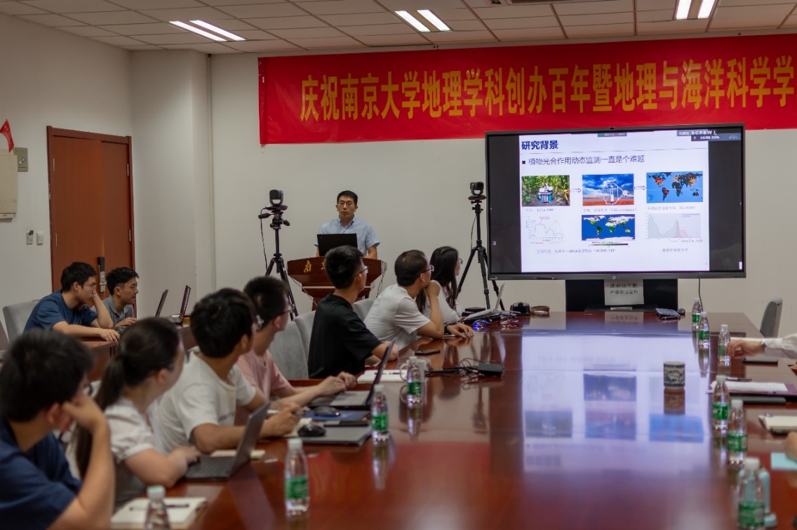 张永光教授在报告中介绍植物光合作用对地球系统碳循环过程具有重要的影响,区域及全球尺度的植被光合作用监测与模拟一直是个难题,长期以来缺乏基于直接观测的手段。他提到叶绿素荧光是植被光合作用的有效探测器,能够为大尺度的植被光合作用动态监测提供关键的技术。随后报告中他详细介绍了基于冠层叶片总激发荧光的光合作用遥感模型,克服了根据不同植被类型分别建模的问题,获得了长时序全球GPP数据,满足了全球尺度长期植被光合作用监测要求。他通过构建用于评估CO2施肥效应的检测-归因模型,发现了近40年全球植被CO2施肥效应加速度呈减慢趋势的科学证据,表明CO2升高对植被光合作用促进作用正在减弱,并会影响全球碳汇潜力。
