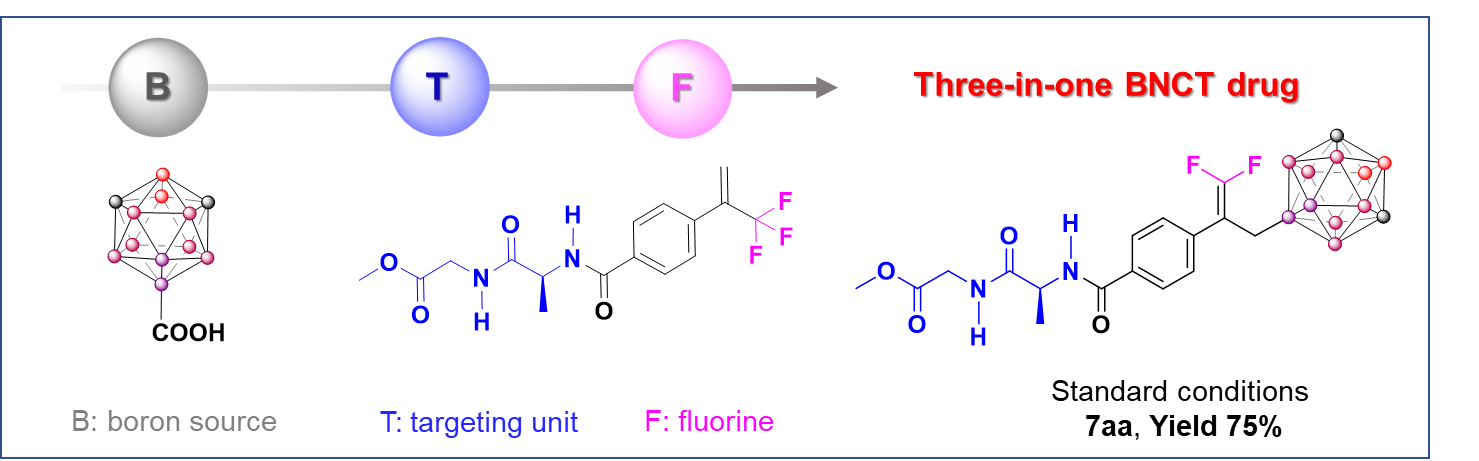 反应对生物医药分子中常出现的多肽片段也具有较好的兼容性。在该条件下可以直接合成同时含有多肽片段、氟原子以及碳硼烷的复杂分子(图3)。预期该合成方法在硼中子捕获疗法抗癌(BNCT)中具有应用潜能。