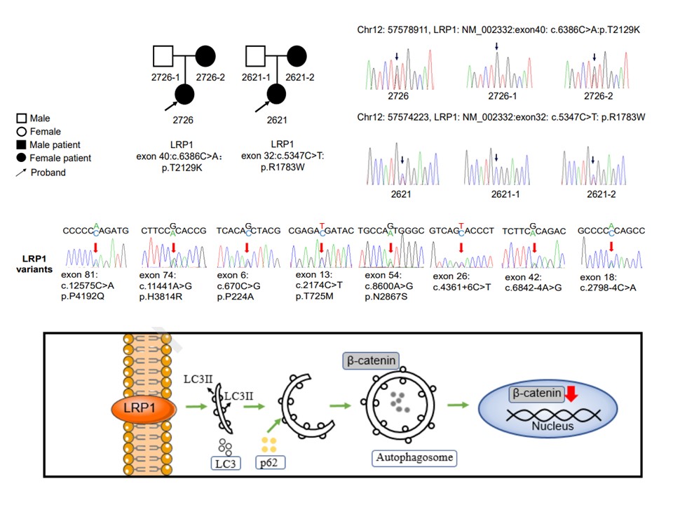 1. 发育性髋关节发育不良患者LRP1基因杂合突变及其病因学分子机制模式图