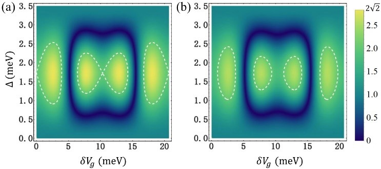 课题组创新性地提出,利用电子、空穴自由度或南部旋量(Nambu spinor)来编码纠缠态,成功摆脱了对旋量分束器的依赖,大大简化了纠缠态的测量方案。物理上,由于电子和空穴具有相反电荷,南部旋量可以通过局域电荷值直接反映出来,无需像对自旋、轨道自由度的测量那样需要分束器装置。该优点导致新方案中纠缠态测量所需要的电流关联函数从传统的4个变为1个,不但大大简化了测量过程而且提高了测量精度。基于上述物理概念,该工作提出了具体物理装置(图1a),并对纠缠态制备手段、量子门操控方案(图1b,c)、具体物理参数和测量步骤都进行了详细的计算和讨论。理论预言了该新型纠缠态的物理信号可以在很大参数区间内违背贝尔不等式(图2)。该工作为固态准粒子量子纠缠的研究开辟了一条新途径,该纠缠态的构建利用了多体费米子基态,因而是凝聚态物理所特有的,并没有光学中的对应物。文章审稿人对该工作给予了很高评价:"This is perhaps one of the most easily implementable proposal to detect entanglement in solid state systems, and thus has huge potential impact."