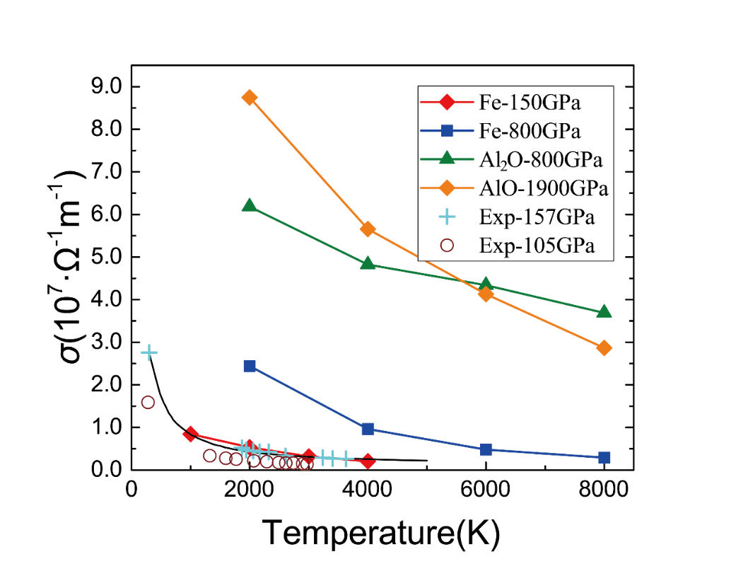 天王星和海王星多级磁场的形成是行星科学中一个长期悬而未决的问题解决这一问题的关键因素之一便是冰巨星内部物质的电导率数值。由于新发现的铝氧化物具有金属性质,孙建教授课题组随即研究了这些物质在行星内核的极端条件下的电导率,相关数据记录在图3中。他们将铁单质作为测试对象,计算结果与之前的理论预测和实验数据符合的很好,验证了他们计算的可靠性。更为重要的是,800GPa的压强下,他们计算得到的一氧化二铝电导率高达6.18×107Ω-1m-1,几乎比铁单质高了一个数量级。众所周知,地球外地核中液态铁的对流运动是地球磁场形成的直接原因。这意味着这些新发现的铝氧化物可能对行星的内部导电物质分布及其磁场产生影响