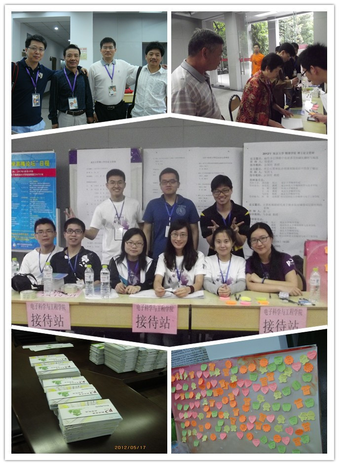 19日和20日两天,志愿团总共接待了600多位校友,在物理楼一楼大厅里面,你可以看到电子科学与工程学院的接待站和一群热情的志愿者,他们分工明确,有些在负责校友信息的登记,有些在招待校友并且和他们交谈,有些跑上跑下在为楼上的校友同学会服务,有些在为校友们解答问题。校友们看到自己的学弟学妹们,也都感觉非常亲切,都和志愿者们进行了交流。